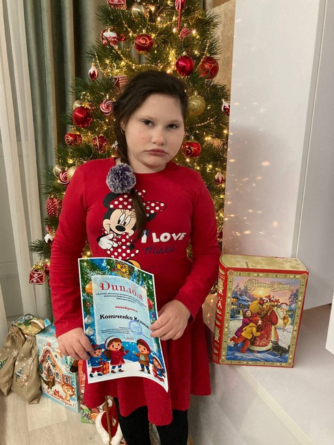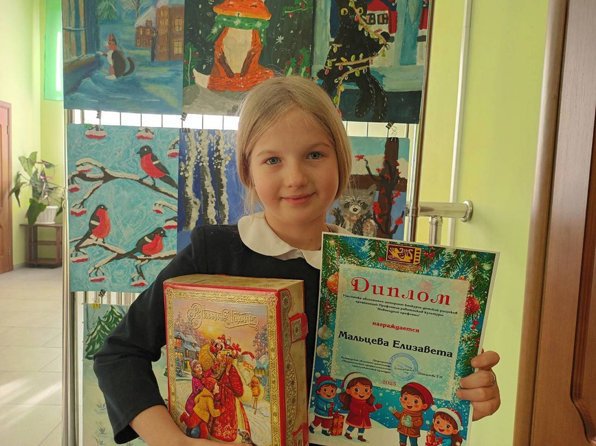 Мы гордимся нашими талантливыми детьми: Арианой Артеменко, Станиславой Бороденко, Давидом Заречным, Аделиной Керусовой, Ксенией Кониченко, Елизаветой Мальцевой и Артёмом Плужниковым! Все участники получили заслуженные дипломы и, конечно же, новогодние подарки. Отдельного внимания удостоилась наша самая юная художница, четырёхлетняя Станислава Бороденко, которой вручили специальный приз – плитку шоколада «Юный художник»!